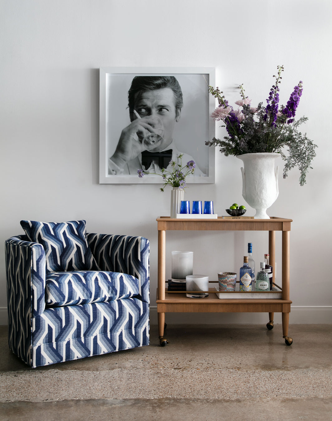 Chic chair for relaxing in a lounge or taking care of business in a home office.