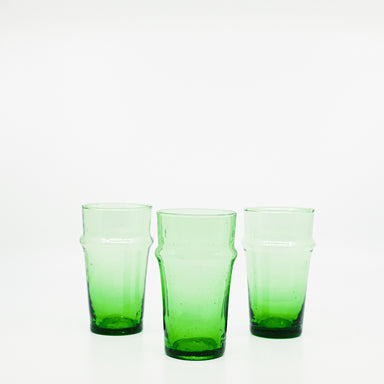 Translucent colored glass for a pretty addition to your bar or table. Sold as a set of six in either blue with straight walls or green with the tra...
